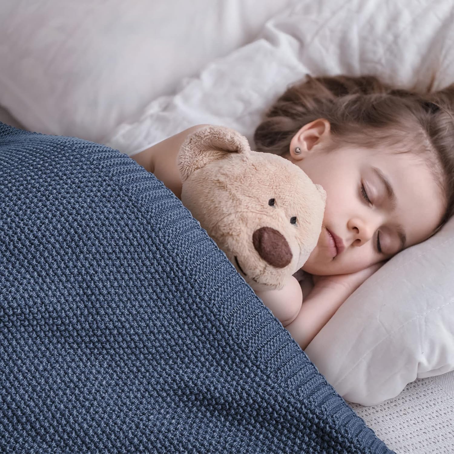 CozeCube Blue Throw Blanket for Couch, Soft Cozy Cable Knit Throw for Bed Sofa Living Room, Lightweight Warm Decorative Farmhouse Christmas Blanket, 50"x60", Dusty Blue